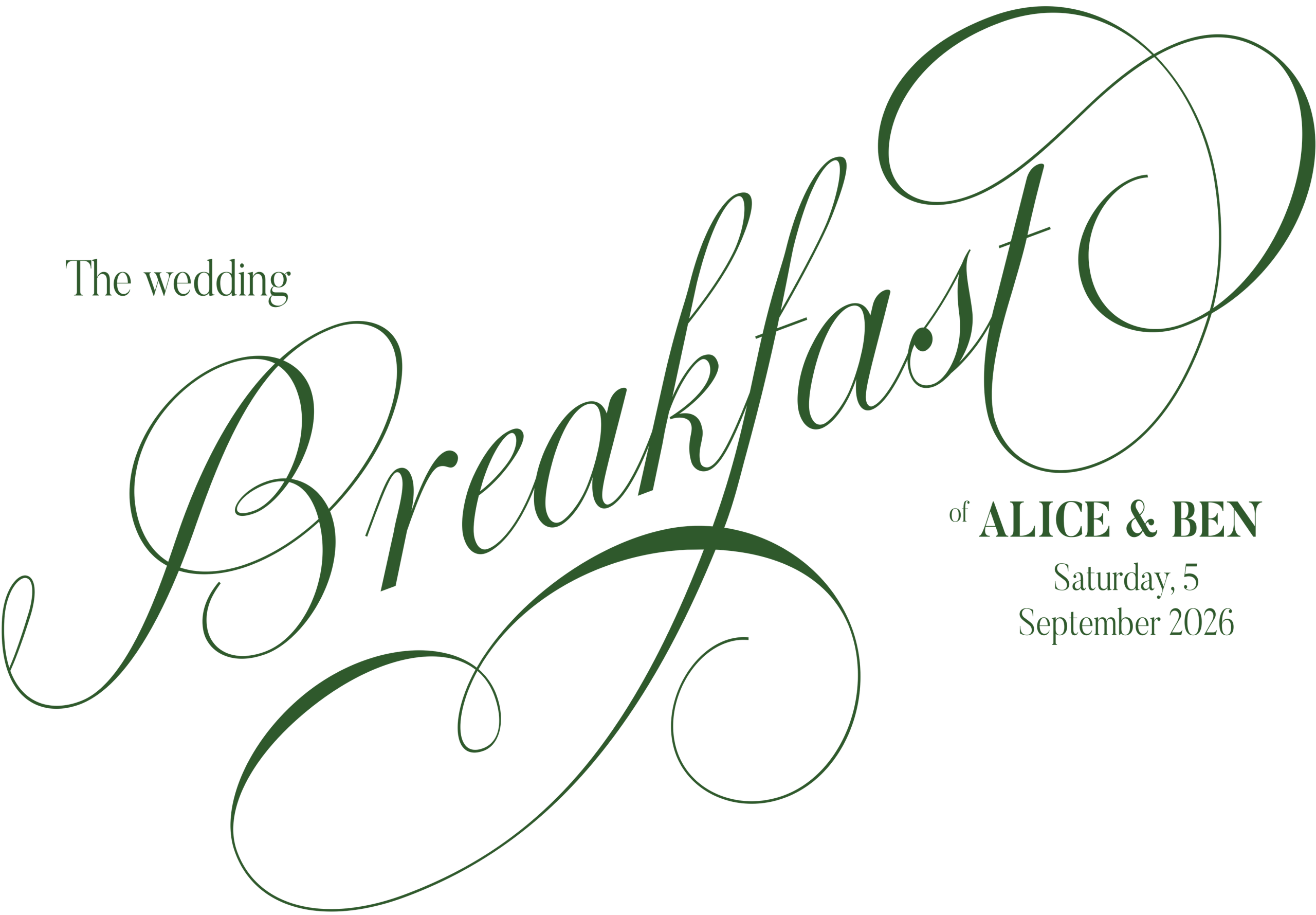 The wedding breakfast will be selected from Emmanuel’s Spring-Summer Fine Dining Menu, which will be made available to us in March 2026. As soon as we’ve settled on options, we’ll reach out to you to confirm what you would like, and to check if you have any dietary requirements.